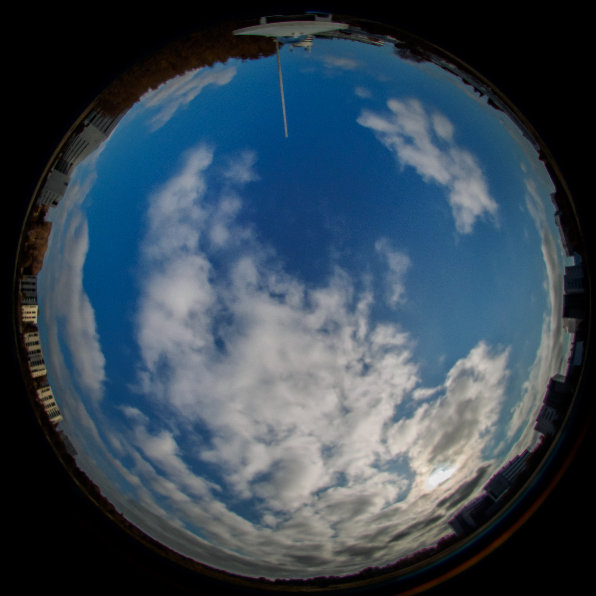 As seen in the photograph above, the true horizon is not visible in all directions. A small grove of birch trees about 100 m to the North of the station were cut in year 2020 while a group of aspens some 300 m to the South were cut at the end of the summer of 2023. The birch trees may have affected the wind regime to some extent from start of measurements in 2015 until the Summer of 2020. In spite of the distance of several hundred meters to them, the tall buildings around the field are likely to disturb wind direction and speed differently in different parts of the field. The buildings occlude the solar disk for very low sun elevation angles but only for some azimuth angles. Anyway, nearly the whole sky is visible to the radiation sensors and the solar disk is occluded by obstacles only vary rarely, delaying “sunrise” and anticipating “sunset” by only a few minutes, causing a discontinuity in the daily course of irradiance, clearly visible at longer wavelengths.